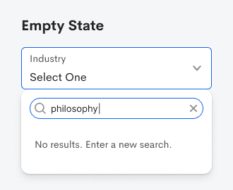 Когда люди вводят несуществующий запрос, нужно показать пустое состояние, чтобы они знали, что результаты не соответствуют их запросу. Достаточно будет написать в сообщении меню «Нет результатов. Введите новый запрос» (No results. Enter a new search).