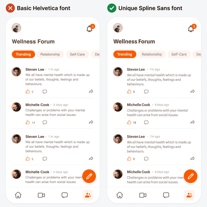 Цвет – мощный элемент брендинга. А типографика — дополнительный элемент, вишенка на торте. В большинстве интерфейсов используют базовые шрифты, которые выглядят устаревшими и универсальными. Уникальный шрифт может придать интерфейсу больше индивидуальности и характера.