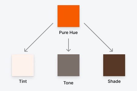 Чтобы создать устойчивый образ бренда нужно четыре цвета: чистый цвет (pure hue), светлый тон (tint), тёмный тон (shade) и тон с добавлением серого (tone). Дальше всё зависит от правильного применения. Вы будете использовать чистый цвет, чтобы создать светлый и тёмный тона, а также тон с добавлением серого.